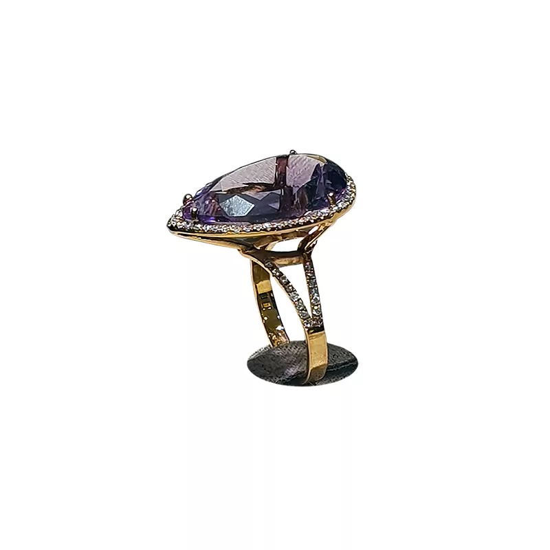 Χρυσό Δαχτυλίδι με Πέτρα Αμέθυστου και Μπριγιάν Διαμάντια.